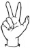 На ћирилици написано БОГДАН ТУШЕВЉАК састоји се из 14 слова [?]. Исписано ћириличном једноручном азбуком за глувонеме: